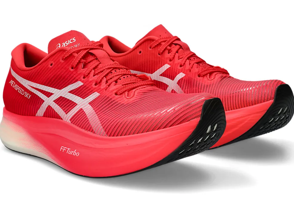 De METASPEED SKY+ wedstrijdschoenen zijn ontworpen voor atleteren met een gelijkmatige cadans die snel uit de startblokken willen komen en nog sneller willen finishen. Met deze schoenen kunnen hardlopers langere passen maken en energie besparen bij elke stap.
