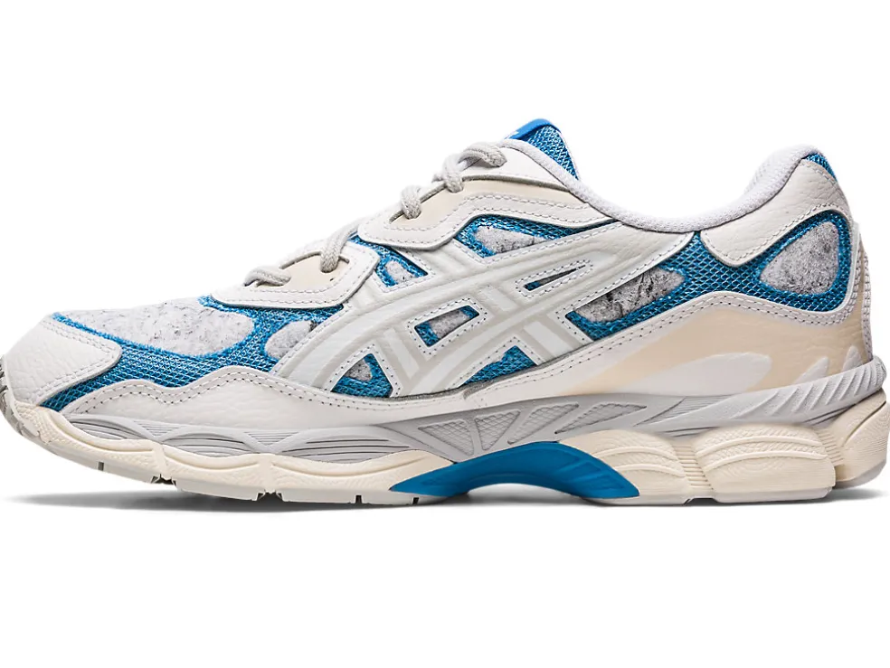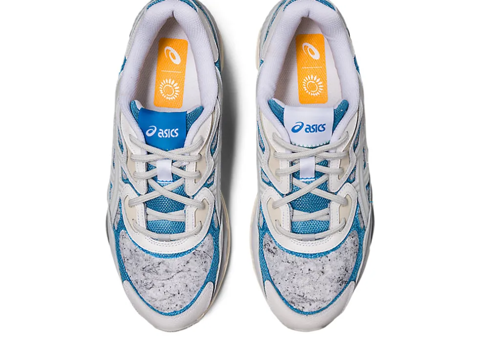 >De GEL-NYC sneaker is geïnspireerd door de Japanse recyclepraktijken. De schoen heeft een consistente blauwe tint die verwijst naar de kleur van de vuilnisbakken en vuilniswagens in het land.Het bovenwerk is voorzien van een geweven materiaal op de onderlagen en is gemaakt van gerecycled PET en textiel. Deze elementen worden in balans gebracht met een netvormig gaas dat op de onderlagen verschijnt. Ondertussen combineert dit hybride ontwerp invloeden van de GEL-NIMBUS 3, GEL-MC PLUS V, en de GEL-CUMULUS 16-schoenen zodat het ASICS-archief een hedendaagse ontwerpbenadering krijgt.