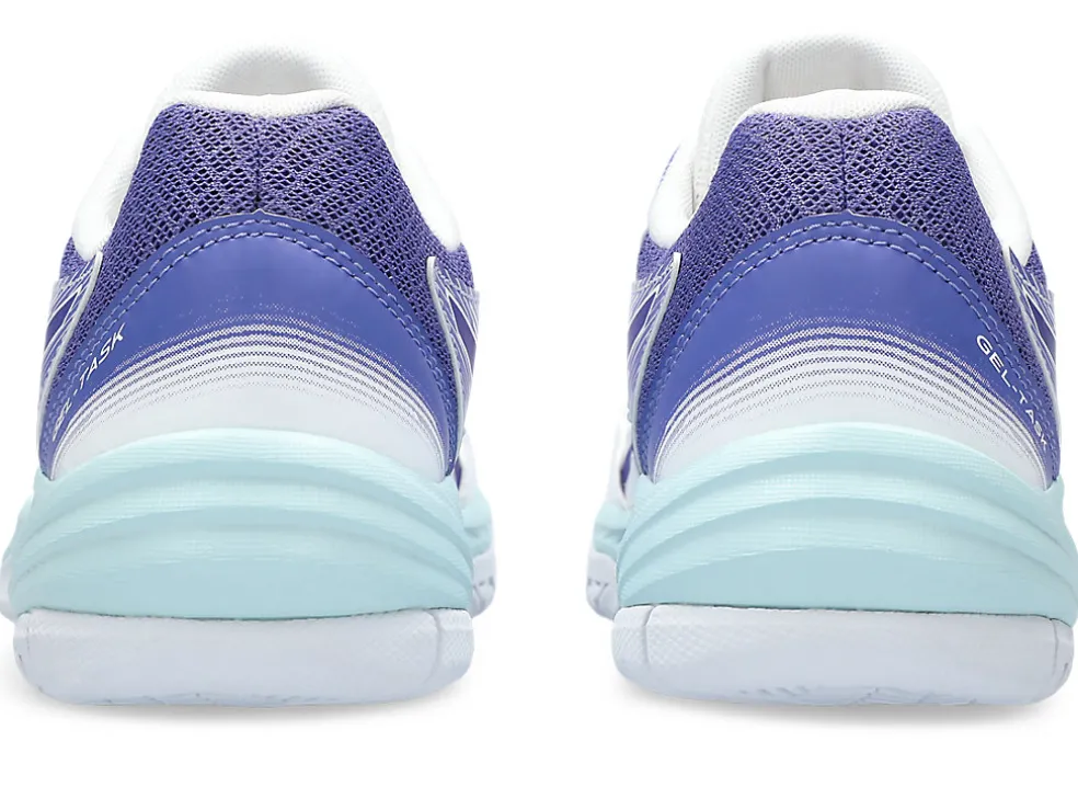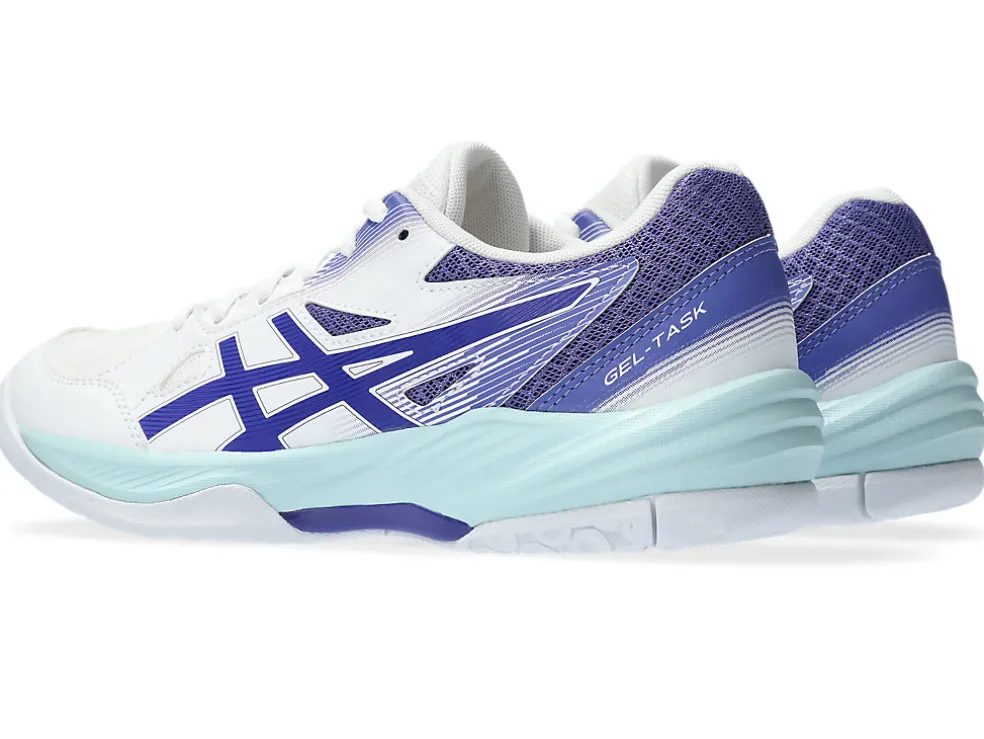 De GEL-TASK 3 voor indoorbanen heeft een veelzijdig ontwerp met uitstekende ondersteuning, flexibiliteit en demping. Deze schoen heeft een stevige wikkelconstructie op de voorvoet en biedt flexibiliteit en goede ondersteuning bij het uitvoeren van bewegingen in meerdere richtingen. Deze zaalschoen is ook gemaakt met duurzaam synthetisch leer en meshvlakken om de voeten koel te houden.